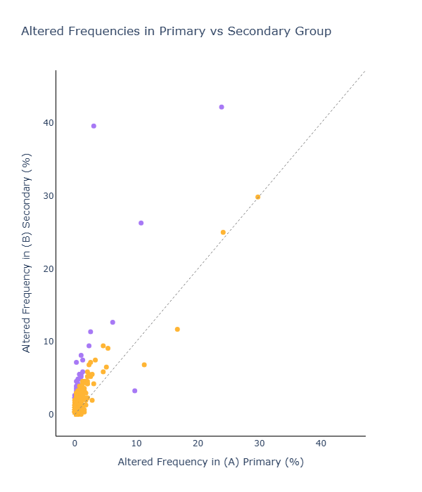 Additionally, researchers can use visualization tools to compare altered gene frequencies or gene expression levels between cohorts for specific genes.